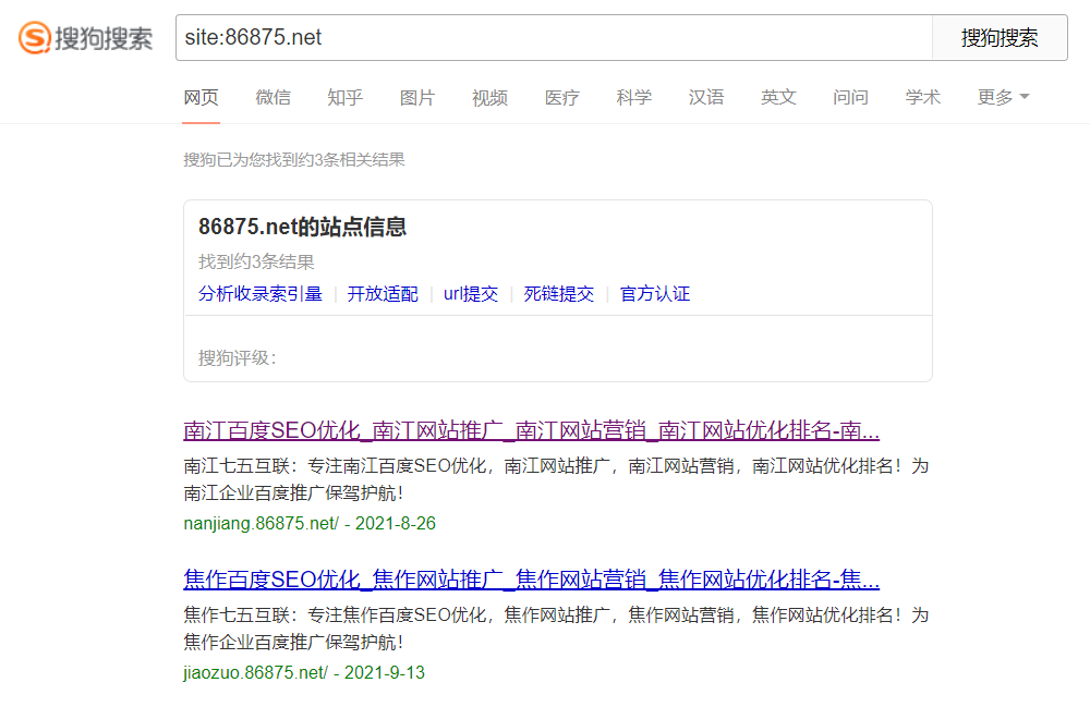 案例展示-1 搜狗收录对比 2021-10-11